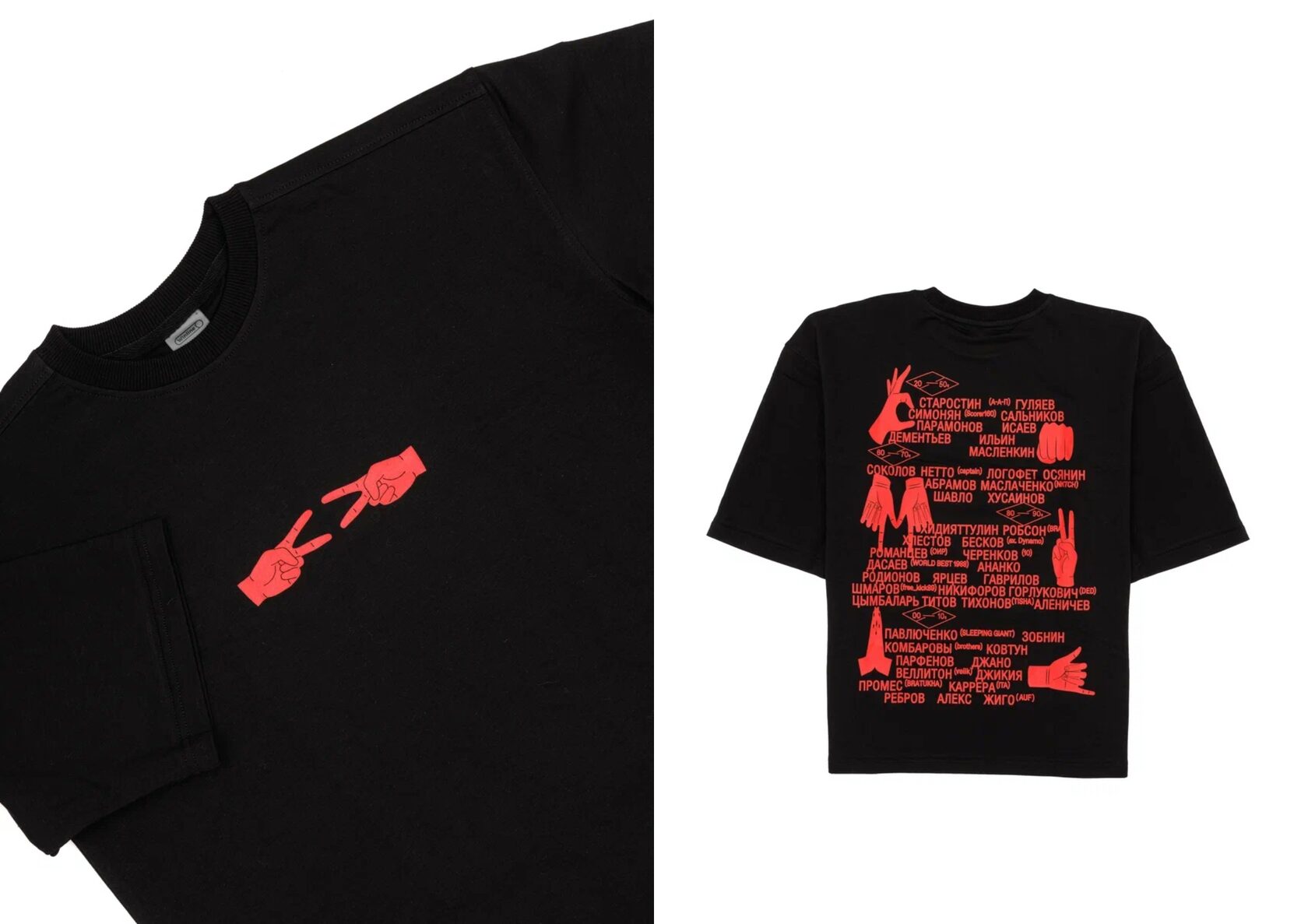 Футболки изготовили в трёх цветах — красном, чёрном и белом.